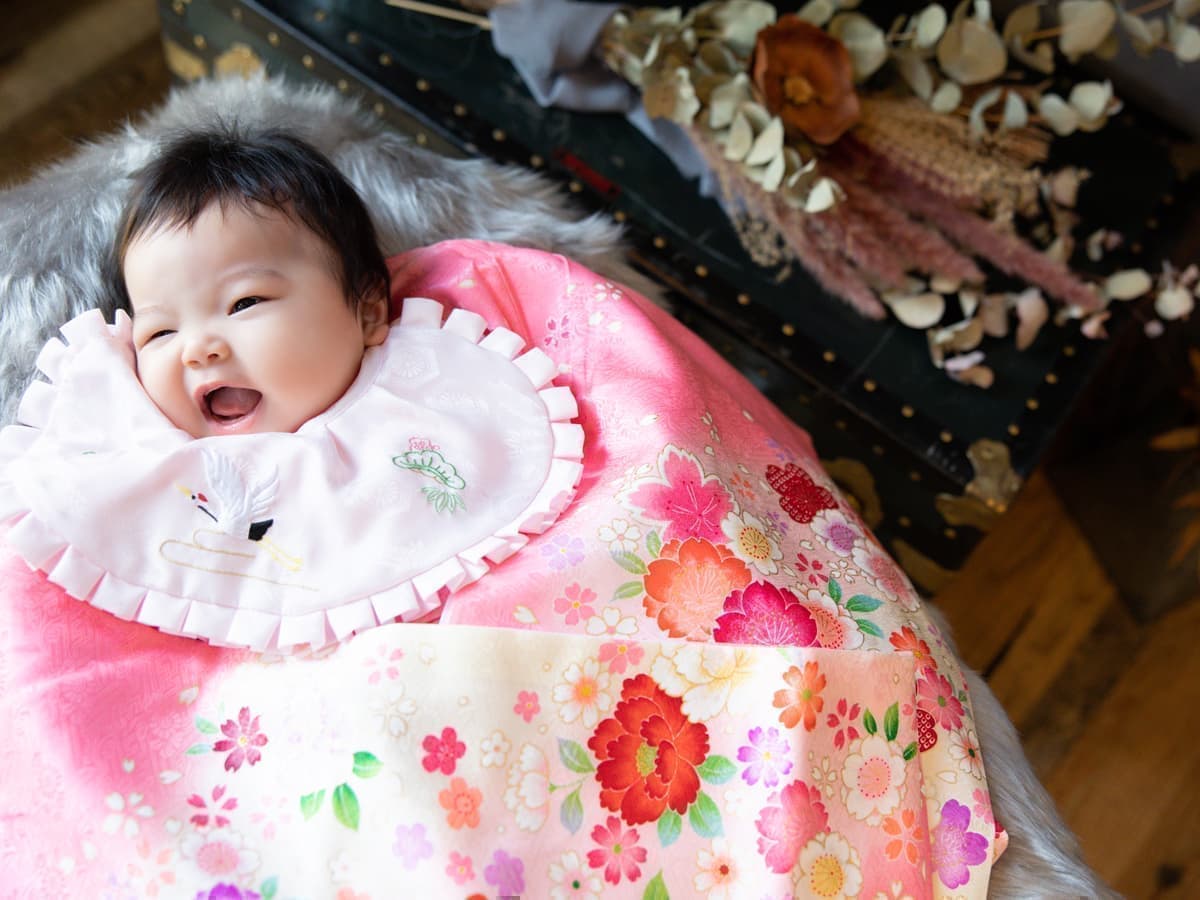 お宮参りは生後30日程度の撮影になります。百日記念は生後100日程度での撮影になります。あまり大きくなりすぎると寝返りが始まりお宮参り、百日記念の撮影が難しくなりますのでお子様の体調と相談しながら日程をお決めください。